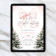 Pink Bow Winter 'Baby It's Cold Outside' Girl Baby Shower Invitation with pine trees and pink bow details.