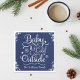 "Baby it's Cold Outside" Christmas napkin features a white script design with snowflake and star accents can be customized with a family name or other custom text. Navy blue background can be customized to another printed background color.