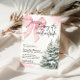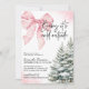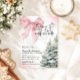Celebrate the magic of winter with this charming Pink Bow Winter Baby Shower invitation! Featuring snowy pine trees, delicate snowflakes, and a soft pink bow accent, this design perfectly blends cozy woodland charm with a sweet, feminine touch. Ideal for a baby shower during the holiday or winter season, this editable template sets the stage for a warm and joyful gathering.
