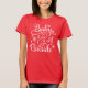 Bright and festive, this red tee features the classic winter saying in white hand-lettered calligraphy with elegant flourishes, delicate snowflakes, and scattered stars. The original artful typography brings a refined, hand-crafted quality to this cheerful holiday look. A spirited choice for Christmas parties, holiday photos, and seasonal celebrations when you want to keep it fun and festive.