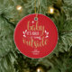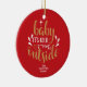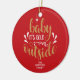 Christmas ceramic ornament featuring the phrase "Baby It's cold outside", set in an elegant gold and white script text on a red background. You can personalise with your family name. Helping to brighten your holiday season decor. A perfect gift as a Christmas decoration!