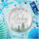 Baby It's cold outside baby shower with silver snowflakes and winter trees.