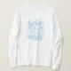 Cute calligraphy long sleeved T shirt. Baby it's cold outside, in icy blue type.