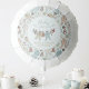 This gender neutral winter Baby Shower balloon features a cute hand-drawn pattern of Christmas pajama bodysuits, plush animals, baby bottles, bibs, pacifiers, presents and tiny yellow stars. Customizable name and event. Elegant mint blue background.