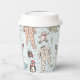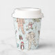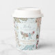 These gender neutral winter or holiday season Baby Shower paper cups feature cute pattern of hand-drawn illustrations of Christmas pajama bodysuits, cute plush animals, baby bottles, pacifiers, presents and tiny yellow stars. Customizable name and event. Elegant mint blue background.