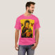 My 11 yo wore adult XL (5’7” 165#). The 8yo is small framed. She wore adult small and tied it in the back. Grandma wore adult large with long sleeve shirt underneath. Tall girl adult medium. Dark haired male adult large. Good quality dark Heather gray, Gildan brand shirt. -it was next up from basic choice and cost about $20 per shirt. Not too thick or thin. Washed and dried well, no major shrinkage. Not see-through. Can wear a bra under it fine. Screen print is just as shown and well done, front and back.