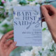 Baby Just Said Yes Blue Floral Engagement Invitation