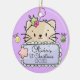 Celebrate the holiday season with this adorable personalized baby kitty cat ornament. Background is a lovely light purple. Both sides are the same and features a sweet baby kitty cat with holly and christmas ornaments accents. Personalize with a name and the year or birth date. Great for your little one at home. Perfect to hang in a tree, mantle, or any other special display.