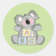 Uses these cute and adorable stickers for envelope seals or baby shower game favors. Design features a cute and adorable animation graphic of a baby koala bear with a set A B C blocks.