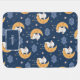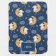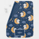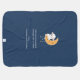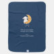 This adorable baby blanket has a pattern of a baby lamb on a crescent moon. There are also clouds and stars and the background is a pretty blue. Blanket may be personalized with a first name and initial on the front and a custom message on the back. (Text may be removed per your preference.)