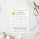 A fun game for the baby shower is the Baby language game. This game features a yellow banner at top and a barrel of honey. On the reverse is a girl teddy bear leaning on a honey barrel watching a honey bee with templates.