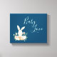 Sweet stretched canvas with “Baby Love” in script with the cutest little bunny in a rattan basket. Dark blue background for a dramatic look. Just adorable. 100% customer satisfaction at “Zazzle”