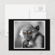 Black and white photograph of a baby cherry-crowned Mangabey monkey with beautiful brown eyes, contemplating life.