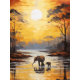 In the soft glow of the setting sun, a baby elephant and its mother share a serene stroll by the tranquil waters. In this enchanting oil painting, the bond between parent and child is beautifully depicted. The silhouette tells a heartwarming tale of love, guidance, and the peaceful moments we treasure in the company of those we hold dear.