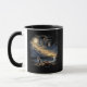This evocative Zazzle mug features a detailed and meaningful night landscape illustration. Under the gaze of a large full moon and a majestic, cloud-formed monkey face, a tiny baby macaque holds onto a larger, orange plush monkey toy as they walk together. A distant forest and waterfall are visible in the background. The dramatic lighting and heartfelt scene make this mug a perfect choice for nature lovers, primate enthusiasts, or anyone who appreciates stories of companionship. Whether for coffee, tea, or hot cocoa, this durable ceramic mug is a thoughtful gift. The complex design is richly rendered, making every sip a moment of contemplation.