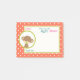 Baby shower sticky notes with a cute baby monkey with a pacifier in his mouth Inside an olive green circle. The background is an orange and white polka dot pattern. The letters in the word baby are hanging down from a boho style arrow. Personalize with your event details.