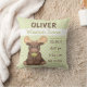 Birth stats pillow in green, brown, and white, featuring a baby moose with a pacifier. Simply personalize with your baby's name and birth stats - or customize to choose different fonts.