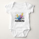 Baby name in shades white to black with pacifier Baby Bodysuit. Customize the name one time and all the shades will follow.