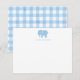 Baby Note Card, Light Blue Elephant Gingham Flat Card
