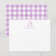 Baby Note Card, Purple Teddy Bear Gingham Flat Card