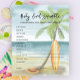 Baby on Board! Baby shower invitation - perfect for a summer baby shower. Beach theme. Watercolor design has a ocean and beach scene with surfboard, palm tree and summer hat.