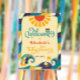 This design can be described as a perfect blend of nostalgia and beach-inspired elements, creating a unique and charming aesthetic. The design captures the essence of the retro era with its vintage-inspired typography. The color palette bright and vibrant, evoking the cheerful and lively atmosphere of a beach setting. It include hues like sunny yellows, ocean blues, and sandy neutrals, creating a visual representation of a fun-filled day by the seaside. It exudes a sense of joy, nostalgia, and anticipation, setting the perfect tone for a memorable and delightful baby shower celebration. Matching items are available.