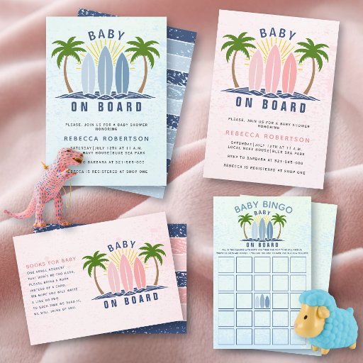 Baby on board sufboards tropical palms baby showerDesigned by Modern Designs