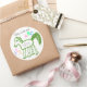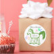 Baby Shower Round Stickers with the wording Baby on the Way, ABC, 123. Cute whimsical green horse with the word Love written in the middle of horses body. Original Artwork and Designs © TamiraZDesigns.