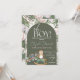 A cute baby shower design of a baby owl in a rocking horse and a choo choo train in green and peach and white color background with personalization options.
