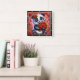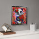 This adorable square wall clock features a heartwarming digital illustration of a fluffy baby panda with large, sparkling blue eyes. The panda is wearing a vibrant red rose crown and is joyfully clutching a massive bouquet of deep red roses tied with a matching ribbon. The background is a magical, high-energy explosion of pink and red hues, filled with floating hearts, shimmering stardust, and whimsical floral patterns. The artwork is framed by a modern black wood-textured border with bold white numeric markers for easy and clear timekeeping. This functional piece of home decor is a perfect gift for panda lovers, Valentine Day, or as a charming addition to a nursery or bedroom. The rich, vibrant color palette and sweet character design provide a cheerful and loving focal point for any room.
