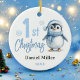 Baby Penguin Boy First Christmas 2024 Ceramic Ornament