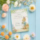 Plain white envelopes are included with paper invitations and will come to fit the invitation size you select. If you don’t need the envelopes, you may choose to not receive them by selecting the dropdown below "Envelopes" and choosing "None." If you’d like to have a design on your envelopes, you can browse all of these available envelopes to find the design that complements your Baby Peter Rabbit Garden Birthday Invitation.