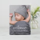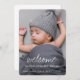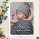 This simply charming photo birth announcement flat card features a contemporary design that's easily customized with your baby's photo, details and your message.We've picked rounded corners as the default shape setting, but you can easily change the look to sharp corners, as that look also works wonderfully with this design. Try both shapes in editing mode and see which grabs you! Along with the full photo format, we've made 'welcome' the focus, presented in all lower case in a modern script that's at once tidy and legible but also expressive, warm and familiar. This script and the other text on the card's front is a crisp white. You can change the color and font of this or any other text according to your own taste, and we invite you to play with these elements. For example, you might change the 'welcome' part of the design to something else, such as 'introducing' or 'hello, world!' etc. And you can always change the size of the text if your own version is too long to fit the space. If you prefer a more minimalist look, you can delete without replacing any of our sample stats-you might not want to include the time of day or length, for example. We've set the background on the back as transparent, to let the color of your paper simply serve as the base tone. You can change this by choosing a color instead, be it a soft blue or pink or anything else. On back, we've added some placeholder text for you to replace with your own message. You can change the font and/or the text color as well. The default text color on the back is a gray tone. After you delete our placeholder text, you might decide to simply leave the back entirely blank, so that you can add a handwritten message with your signatures after you receive your cards. Or you might enter a message and then sign the cards by hand after you receive them, rather than entering your names when you edit the other text. In any case, please do remember to remove all of the placeholder text on the back including the sample names as well as the sample details and photo on the front! The default paper type, matte, has a soft warmth to it and resists smudging, so it's a great choice for writing your own message. Use the intuitive design tools, your favorite photo and your inspiration to personalize this custom birth announcement flat card and make it uniquely yours!