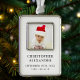 Baby photo keepsake Christmas holiday ornament. The baby's name, date, and birth stats are displayed in a simple modern design around the photo. Photo template via Pixabay licensed under CC0 and must be replaced with your own photo