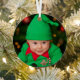 Baby Photo Christmas with Name and Year Metal Ornament