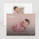 Cute, modern, and simple photo birth announcement featuring a full bleed horizontal landscape photo. On the reverse side is another photo in a frame with additional information you can replace with your custom message.