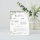 The light and airy vibe of this baby shower is full of lush sage greenery, bronze accents, and dainty white florals that pay homage to the Baby in Bloom theme while keeping it gender neutral. Green is a hue full of vivaciousness, and life making it the perfect theme for a baby shower. If you’re a nature lover, then you’re going to love this all-natural gender neutral theme! Just think of the succulent party favors. Change background color or add graphics to match your shower theme. Need coordinating graphics please contact me for a custom order. Of course it's not required that you play games at the baby shower, but consider this: You're going to have an all-ages group, and most of the guests have probably never met one another before the party. Mixing in a few of these classic baby shower games is a perfect way to break the ice. Our double sided game cards are an elegant and practical addition to any shower. These professionally designed cards are quickly customizable. Add your custom wording to this design by using the "Edit this design template" boxes on the right-hand side of the item, or click the blue "Customize it" button to arrange the text, change the fonts and colors and to also add additional information or images to this design. Click "Customize Further" to open full editing options. If you need any coordinating items, (thank you cards, etc.) please contact me for a custom order. ****For custom requests you need my help with, do not place this merchandise in your cart. Instead, email me your request at lauralise@iyhtvdesigns.com A link to your merchandise will be emailed to you once the item is available. You can use that link to place your order. Please allow up to 48 hours.