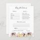 This baby shower game card features beautiful soft watercolor pumpkins & florals in shades of blush pink and white that are balanced with sweet orange and burgundy purple, making it a warm and airy palette. Change background color or add graphics to match your shower theme. Need coordinating graphics please contact me for a custom order. Of course it's not required that you play games at the baby shower, but consider this: You're going to have an all-ages group, and most of the guests have probably never met one another before the party. Mixing in a few of these classic baby shower games is a perfect way to break the ice. These professionally designed cards are quickly customizable. Add your custom wording to this design by using the "Edit this design template" boxes on the right-hand side of the item, or click the blue "Customize it" button to arrange the text, change the fonts and colors and to also add additional information or images to this design. Click "Customize Further" to open full editing options. If you need any coordinating items, (thank you cards, etc.) please contact me for a custom order. ****For custom requests you need my help with, do not place this merchandise in your cart. Instead, email me your request at lauralise@iyhtvdesigns.com A link to your merchandise will be emailed to you once the item is available. You can use that link to place your order. Please allow up to 48 hours.