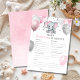 This baby predictions shower game card features pink and gray baby girl elephant with balloons and confetti. Perfect for your guests to play along.