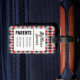 Oversized elegant argyle pattern in school colors of red and black set the backdrop for this cute baby ID tag design. A white baby bodysuit on the front states that you have the best baby ever, while the back includes your child's name and parents' contact information. Design comes in maroon and gray, burnt orange and gray, red and black, green and black, orange and navy, green and yellow, and purple and gray. Matching products available.