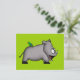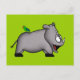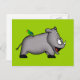 Cute cartoon baby rhino with a tiny tusk and a green and blue bird perched upon his little gray rump. Original digital cartoon art by Taylor Addams.