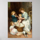 Baby’s Bath Time by Arthur John Elsley is a heartwarming Victorian painting of a mother and two sisters helping bathe a baby in a tub, while a little pet dog scampers away from the splashes. This nostalgic family scene is full of warmth and playful charm, making it a wonderful choice for art prints, greeting cards, and timeless gifts.