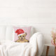 Baby`s First Christmas Pink Teddy Bear Santa Hat Throw Pillow