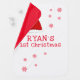 Baby`s First Christmas Santa Hat Snowflake baby blanket. Cute baby first Christmas design with a Santa hat, red snowflakes and a baby name - personalize with your baby`s name.