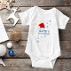 Baby`s First Christmas Santa Hat Snowflake baby Bodysuit. Cute baby first Christmas design with a Santa hat, blue snowflakes and a baby name - personalize with your baby`s name.