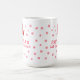 Baby`s First Christmas Santa Hat Snowflake Coffee Mug. Cute baby first Christmas design with a Santa hat, red snowflakes and a baby name - personalize with your baby`s name.