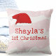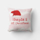 Baby`s First Christmas Santa Hat Snowflake Pink Baby pillow. Cute baby`s first Christmas design with a Santa hat, pink watercolor stripes, snowflakes and a baby name in a white script - personalize with your baby`s name.
