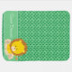 This personalized baby blanket features a repeating pattern of green jungle leaves and a green strip at the bottom with a template area for a baby's name or other custom text. A cute clipart baby lion sits in the left bottom corner of the baby blanket.