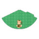 This party hat features a repeating pattern of green jungle leaves over a lighter green background and clipart of a cute brown and tan baby monkey on the front.