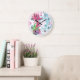 This large round acrylic wall clock measures over 10" in diameter; but you can select a smaller size if you wish. It features our cute baby pink seahorse under the sea. Look for other products in our shop that beautifully coordinate with this one.